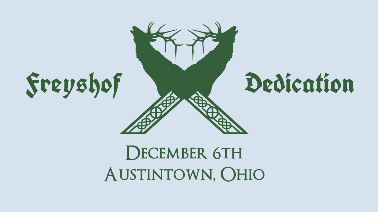 You are cordially invited to the dedication of Freyshof, the Fifth Hof of the Asatru Folk Assembly on Saturday, December 6, 2025 in Austintown, Ohio. Please join us for this once in a lifetime event, the dedication of an Ásatrú temple to one of our Holy Æsir, Lord Freyr.